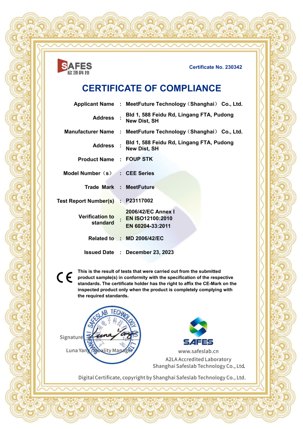 MeetFuture products are subject to a robust series of quality control measures and methods, ensuring that the equipment's quality during design, manufacturing, installation, commissioning, and usage aligns with the set standards. We implement a product life cycle quality control plan early in the APQP process. We maintain stringent quality oversight at each node. This approach enhances the equipment's reliability, safety, and user-friendliness, diminishes failure rates, extends service life, boosts production efficiency, and generates greater economic value for our customers.